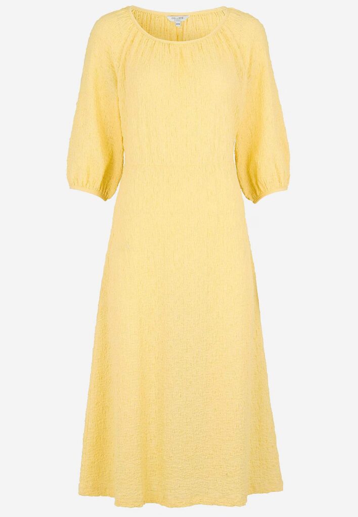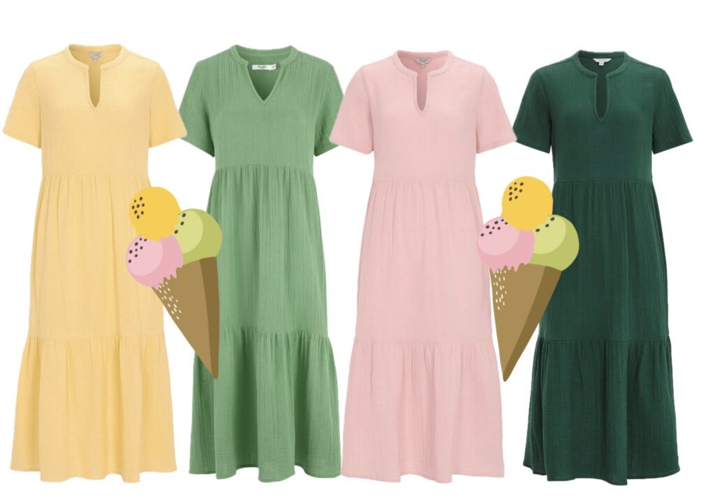 Den här klänningsningsmodellen finns i många färger, förutom de här fyra i t ex starkrosa (säger msn ens cerise längre?) och blå. Jag har för mig att jag har den i ljusgrön , starkrosa(säger man cerise numera?) och kanske svart. Länk volangklänning.Jag tror det blir en rosa också för dem här är skön, lättburen och skrynklar inte mkt här jag för mig. Den är redan krinklad i tyget dessutom. Jag har 50/52 i den här modellen. Här i cerise.Och den gröna (lite skrynklig när man tar tar den direkt från påsen).För att variera mig lite så blir det en gul också, fast i den här modellen istället för den översta. Nån måtta får det ju vara. Länk gul klänning. Den här när man fått lite solbränna kanske blir bra tänker jag. Finns även i nougat.Och så är jag ju förtjust i det här materialet. Jag har redan flera klänningar i det. Smickrande för figuren, skrynklar inte(perfekt på resa) och passar till vardag som fest.
